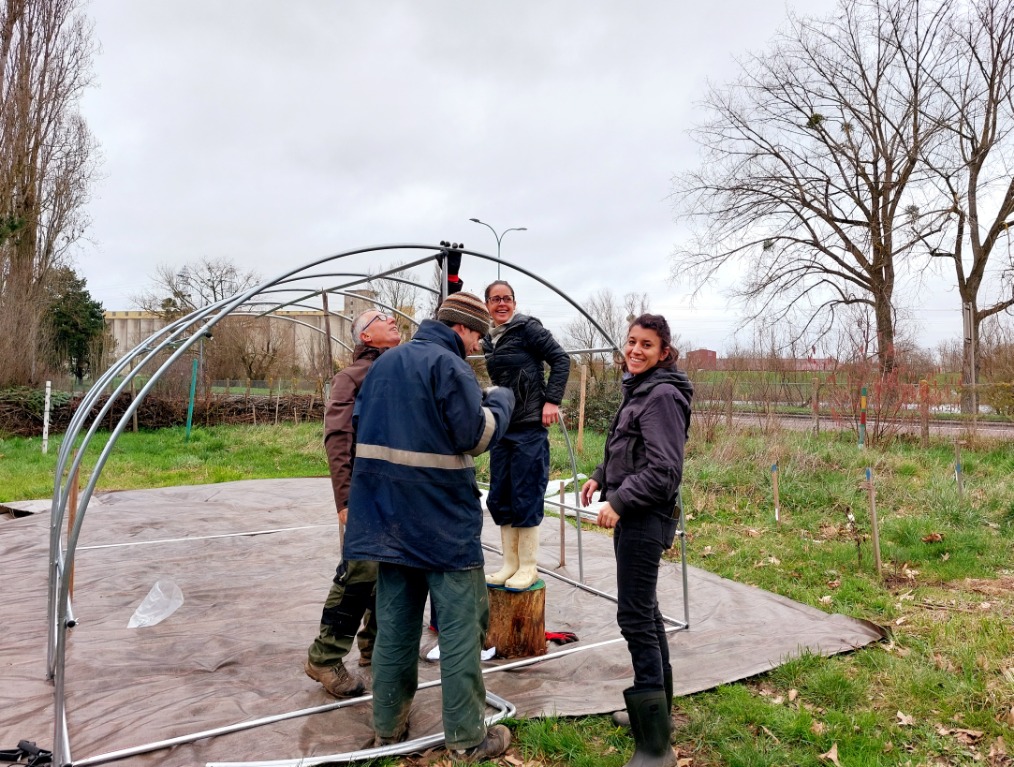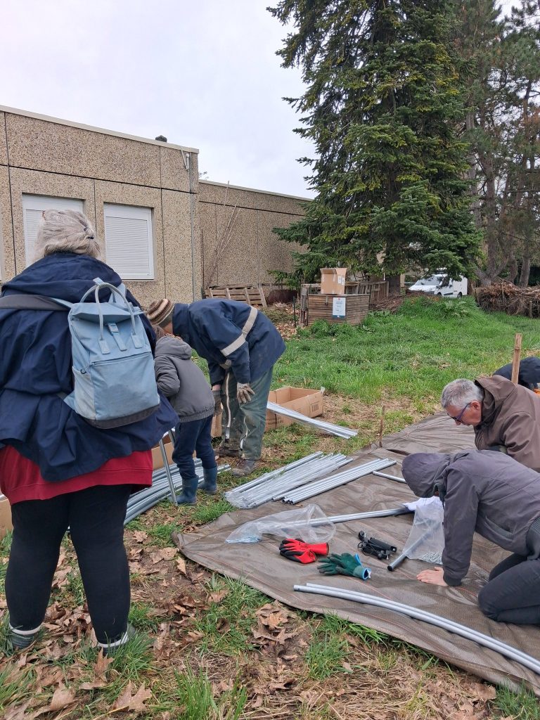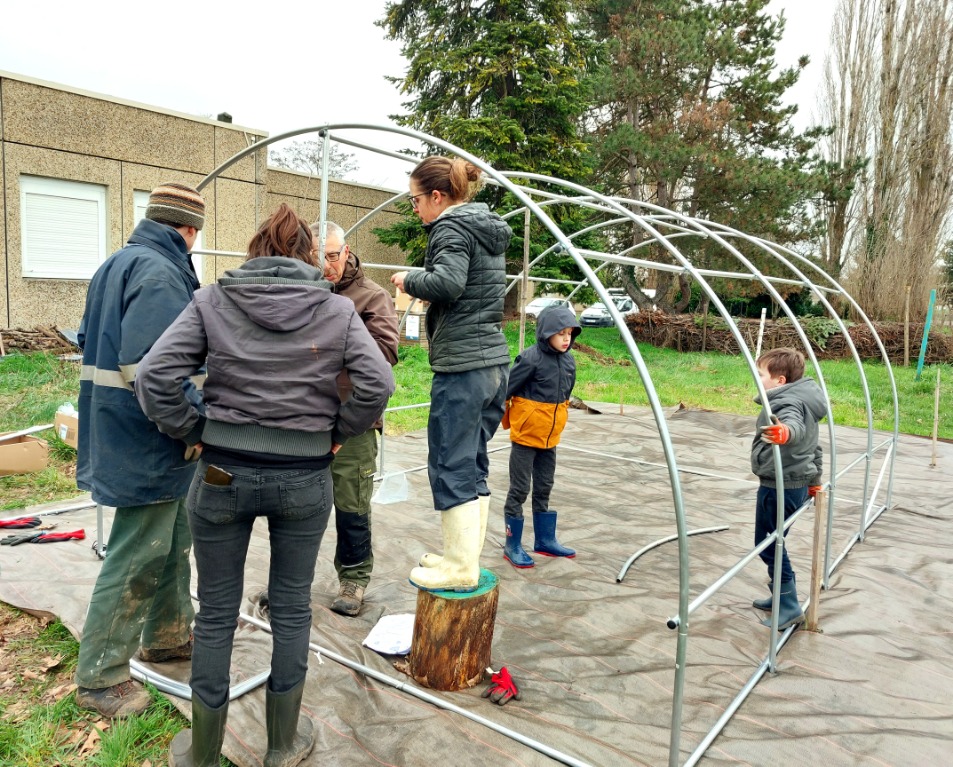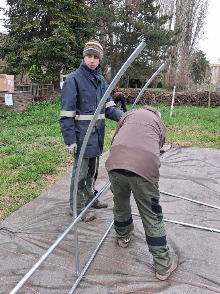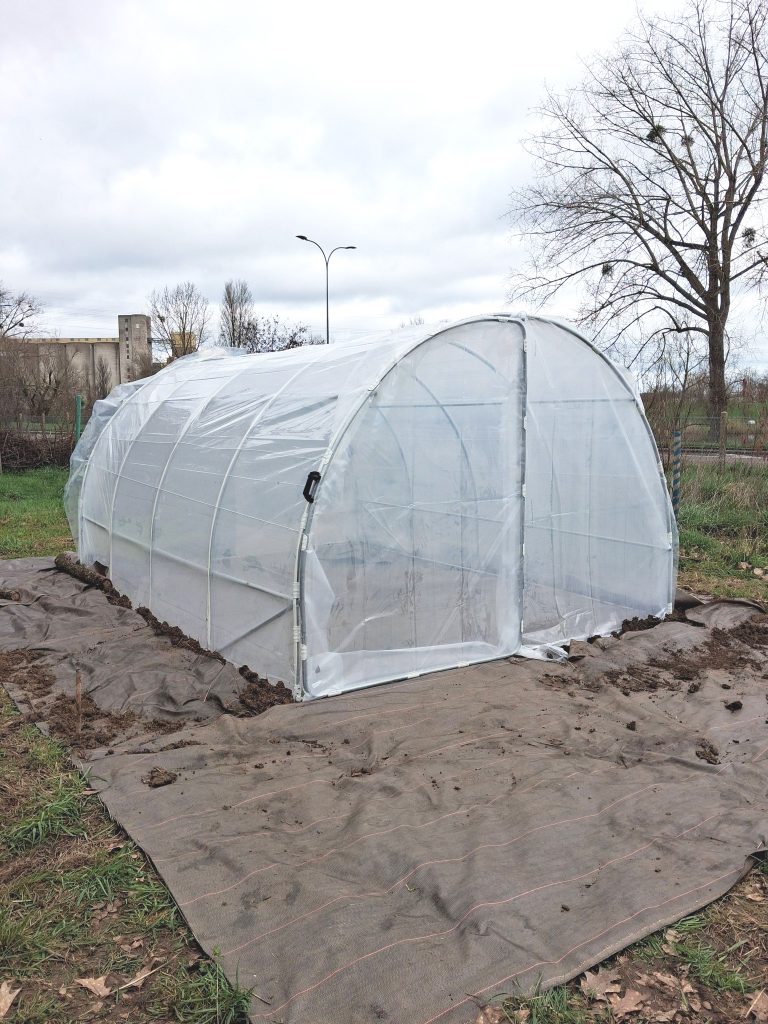 • Montage de la serre : une structure désormais en place pour accueillir semis, plants sensibles et boutures.