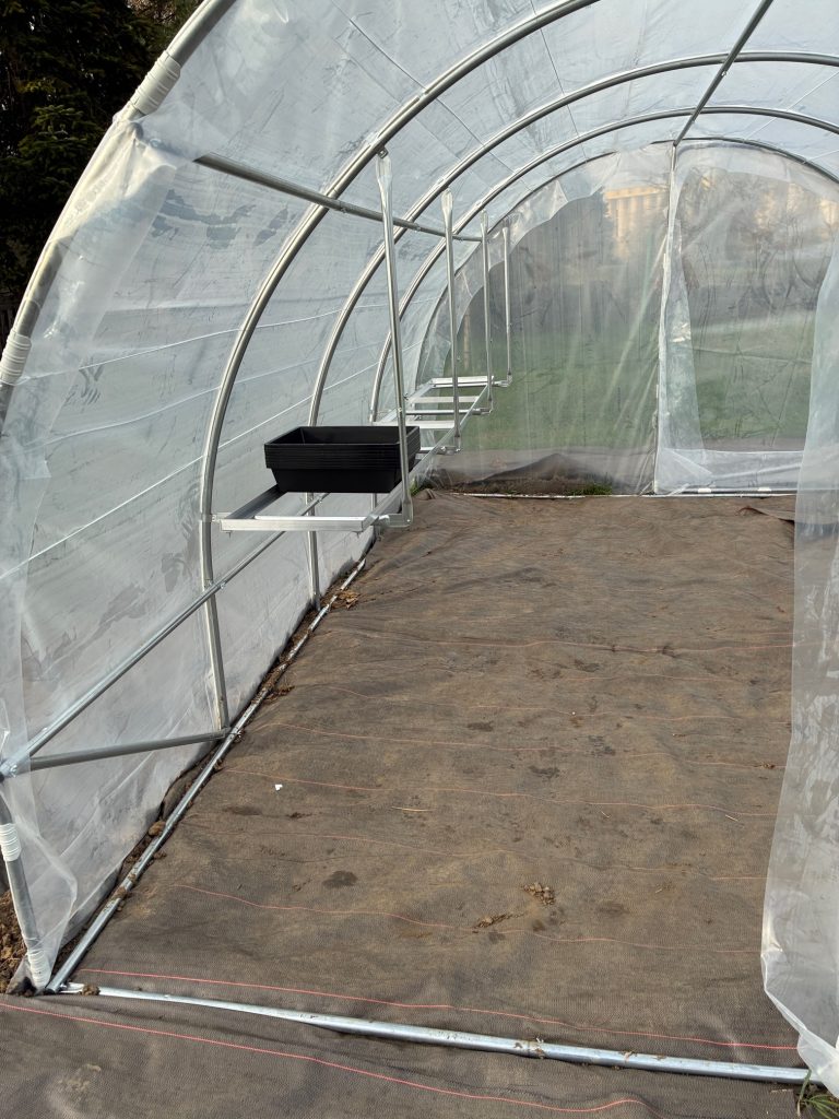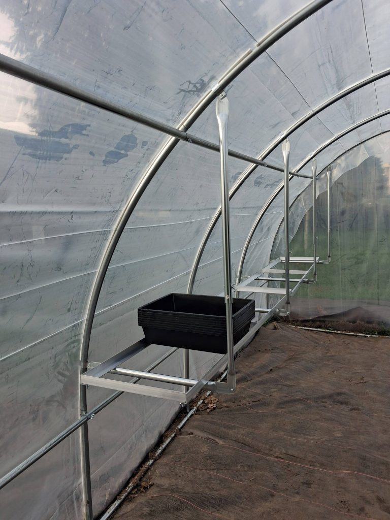 • Aménagement de la serre avec le montage d’étagères pour préparer les futurs semis