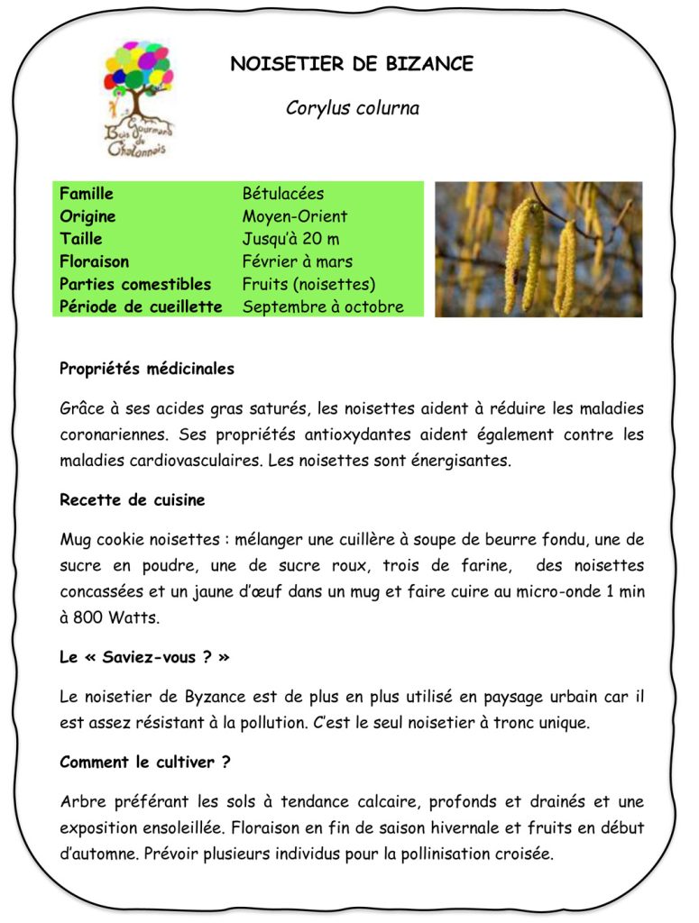 AccueilNoisetiers de Byzance Noisetiers de Byzance Noisetiers de Byzance – Corylus colurna Anecdote : Produit de petites noisettes comestibles, souvent pour la faune. Pour télécharger la fiche, c’est ICI