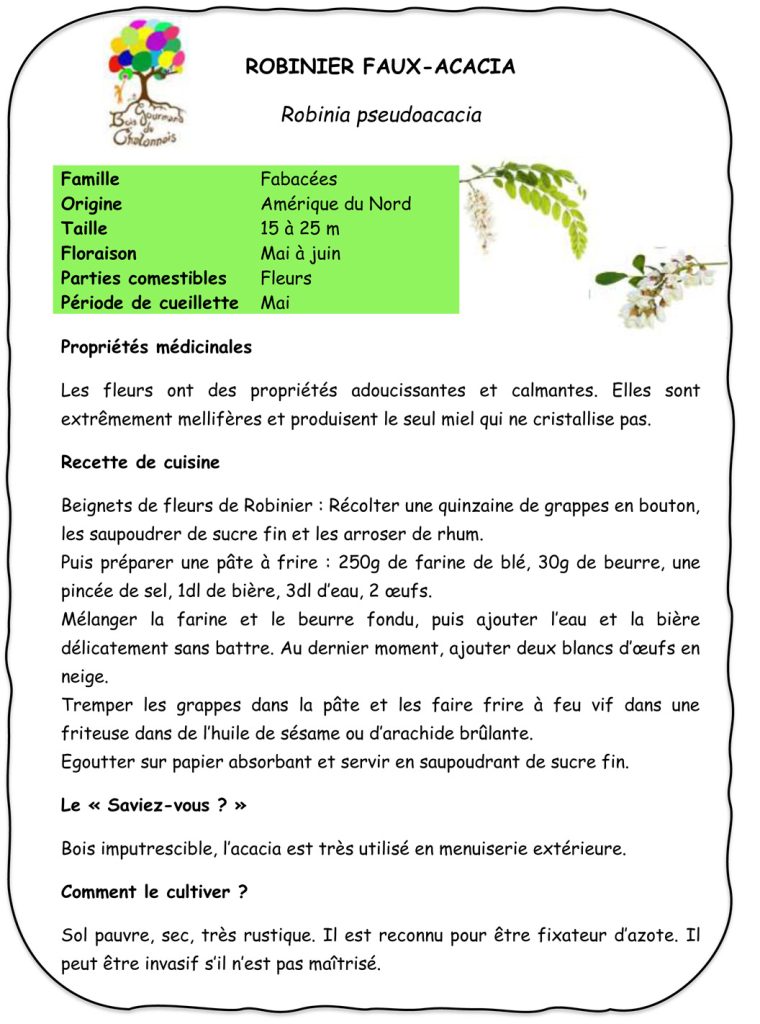 Anecdote : Les fleurs blanches sucrées sont mellifères et excellentes en beignets.